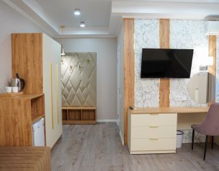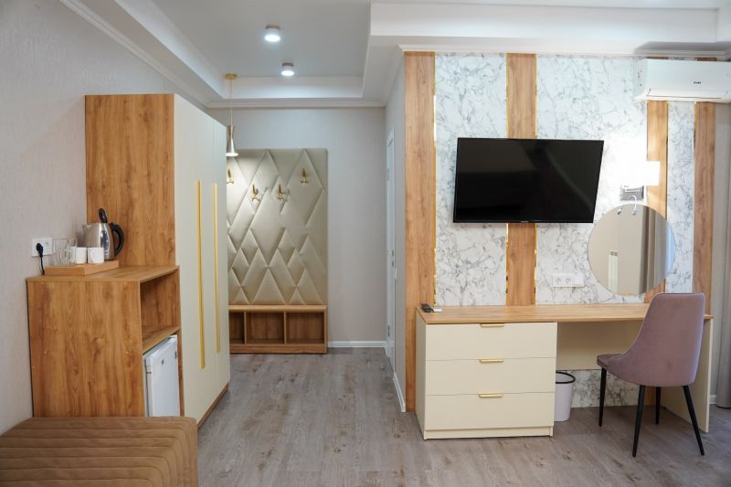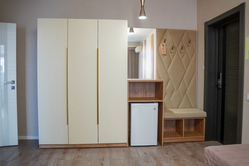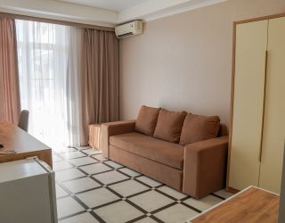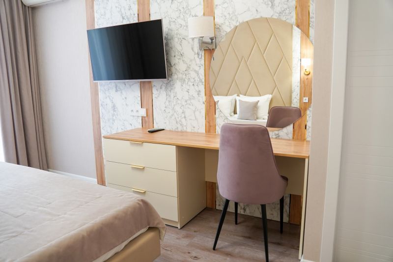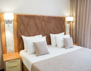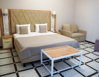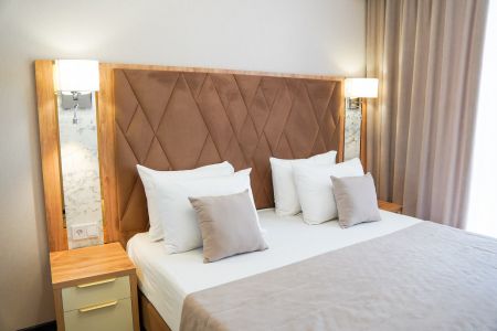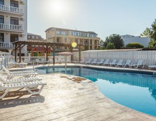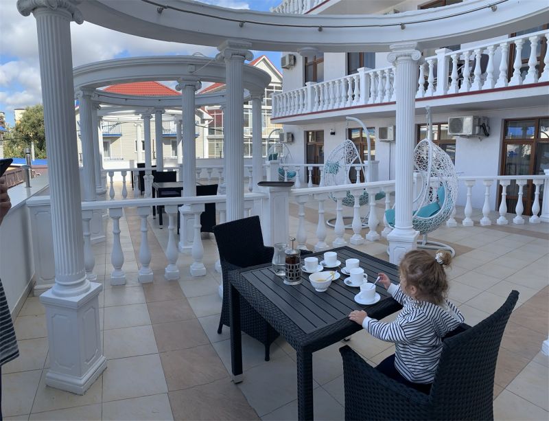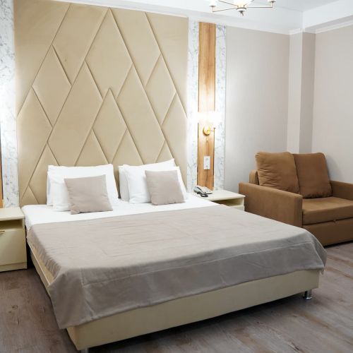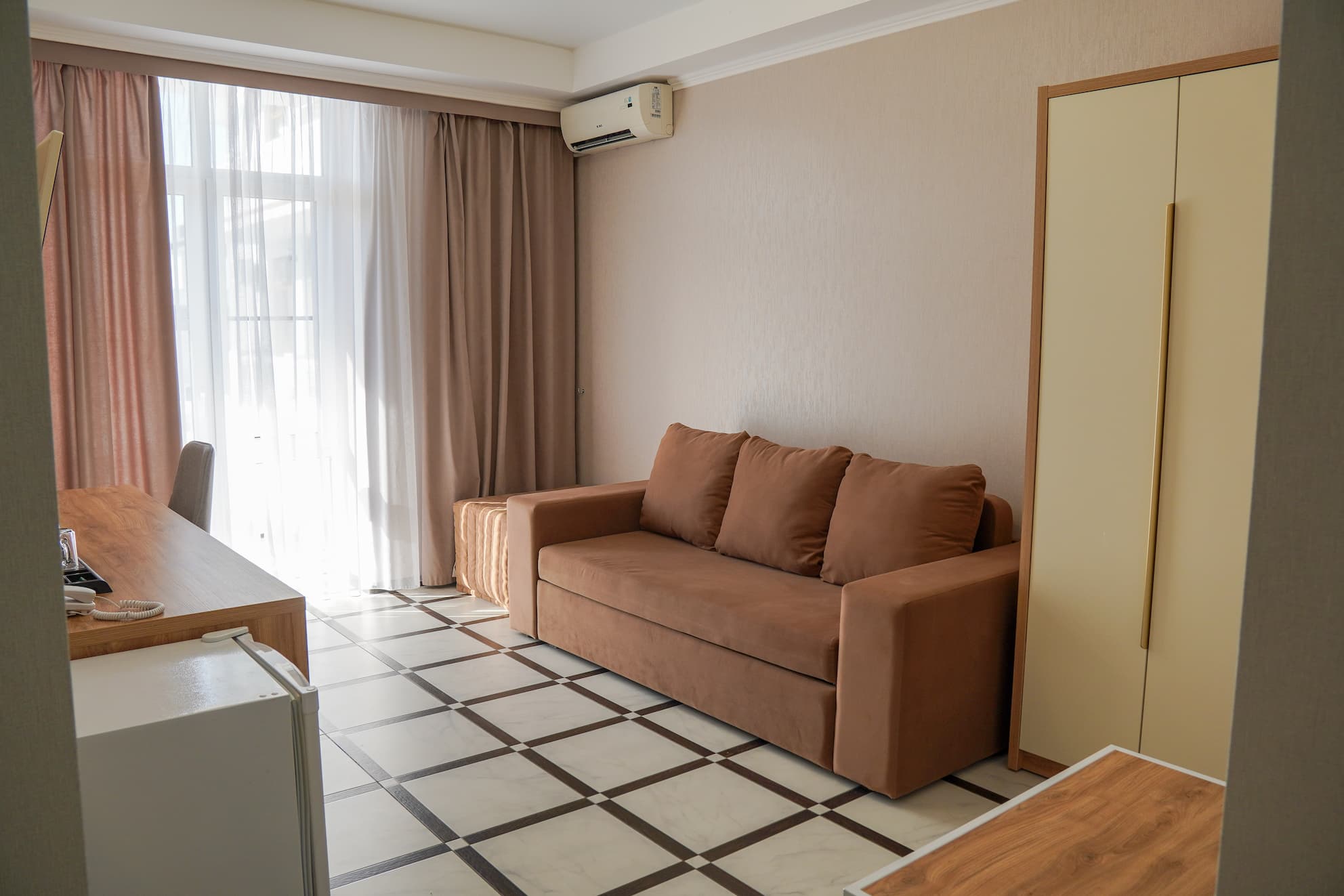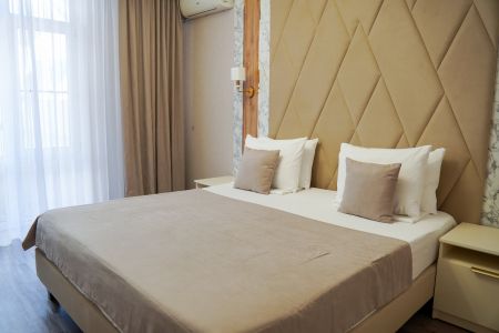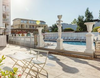 Пятиэтажный корпус отеля с белоснежными балюстрадами балконов разместился всего в 300 метрах от морского побережья. К услугам гостей 60 стандартных номеров с приятными светлыми интерьерами и панорамными окнами. В каждом номере предусмотрен собственный санузел, есть кондиционер, телевизор-ЖК и небольшой холодильник.