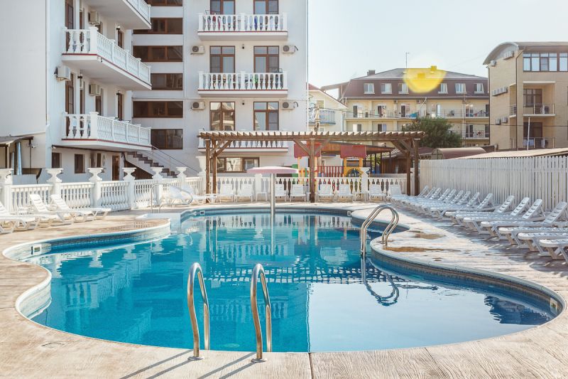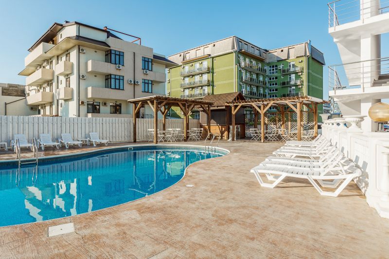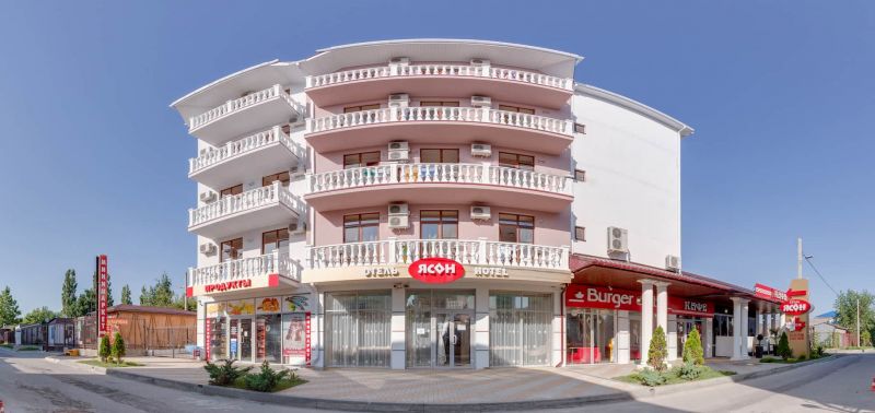Отель «Ясон» распложен в черноморском поселке Витязево всего в получасе езды от центра Анапы. У отеля отличное местоположение, в шаговой доступности все необходимое для хорошего отдыха: аквапарк, аттракционы, главная туристическая пешеходная улица — бульвар Паралия, караоке-бары и дискотеки. В 20 минутах езды находится аэропорт, а до вокзала в Джемете всего 2 километра.