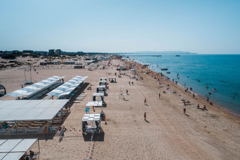 В паре минут ходьбы находится песчаный пляж. Помимо традиционной пляжной атрибутики — лежаков, навесов, зонтиков, на побережье много водных аттракционов, открыты бары и кафе.