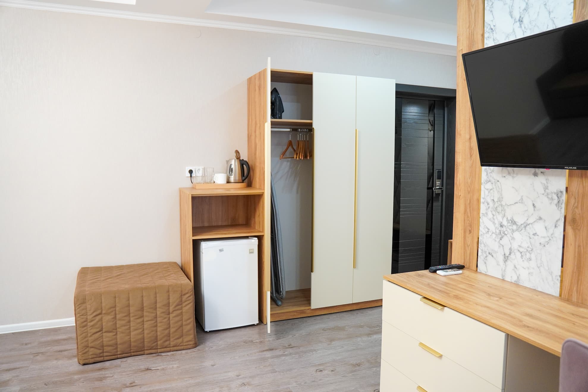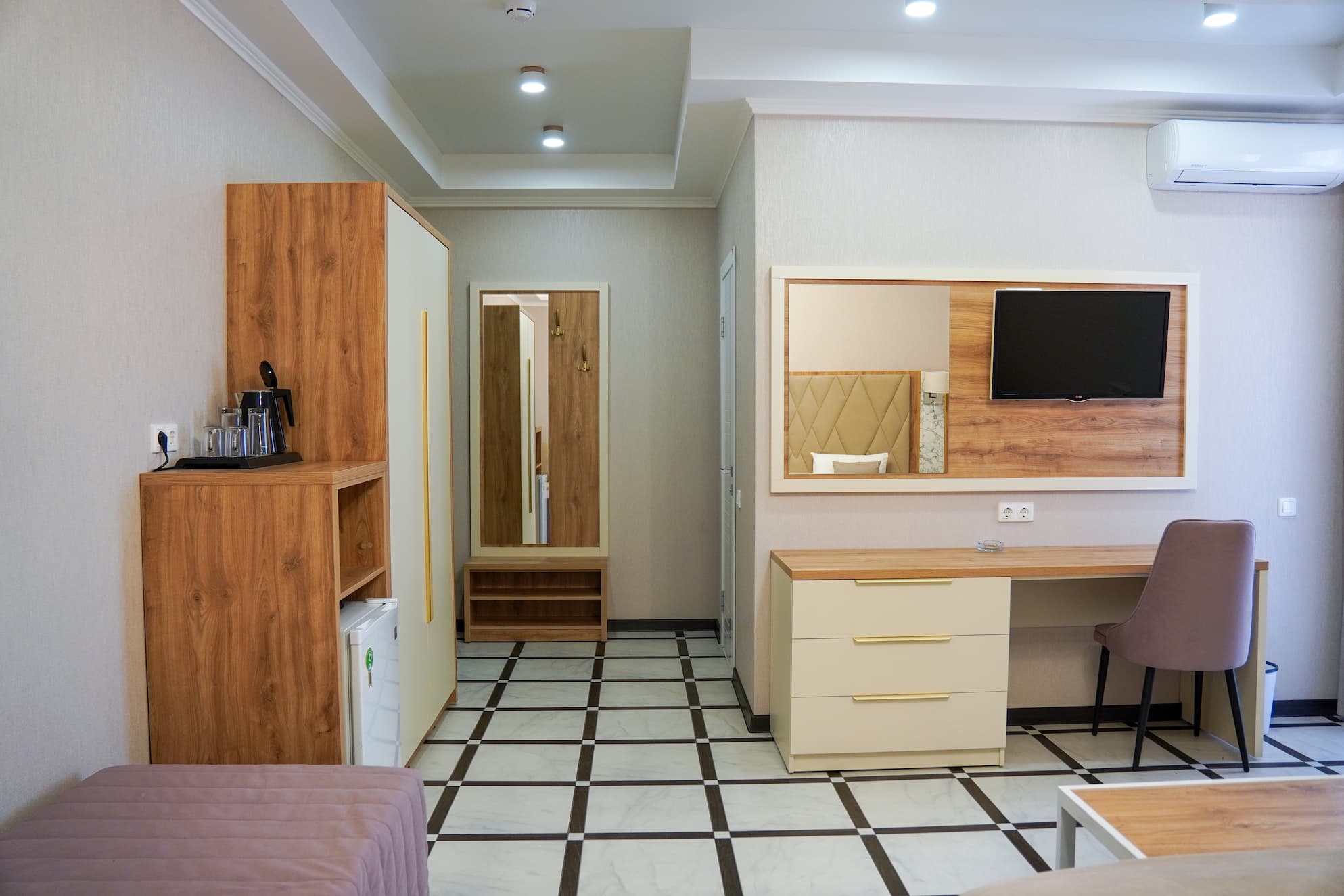 - Оборудование: кондиционер, мини-холодильник, сейф, телевизор, электрочайник